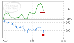 Les cours ont clôturé à 198,85 validant le signal : «Indicateur de progression des cours (Momentum) à court terme».