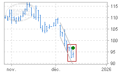 Les cours ont clôturé à 94,09 validant le signal : «Barre intérieure (à la hausse) à court terme».