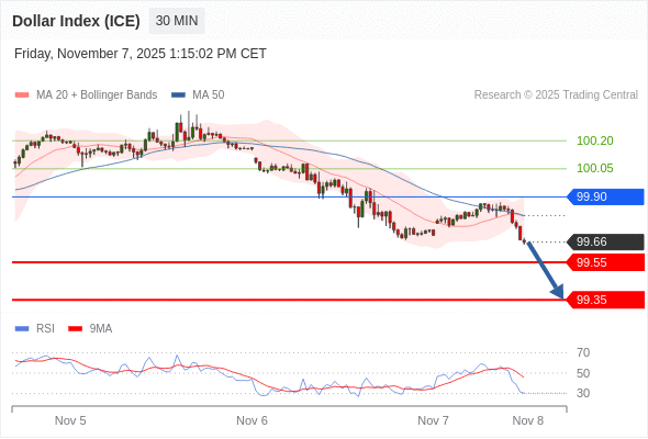 | Short positions below 99.90 with targets at 99.55 & 99.35 in extension. |