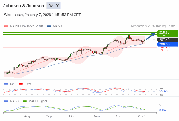 Johnson & Johnson ST : as long as 200.53 is support look for 218.65 |