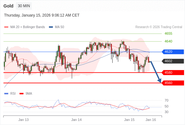 Our preference: short positions below 4620 with targets at 4580 & 4560 in extension.