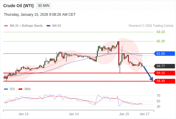 Comment: as long as the resistance at 61.00 is not surpassed, the risk of the break below 59.10 remains high.