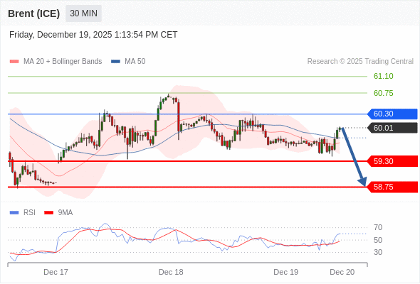 Our preference: short positions below 60.30 with targets at 59.30 & 58.75 in extension.