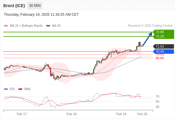 Our preference: long positions above 70.40 with targets at 72.25 & 72.80 in extension.