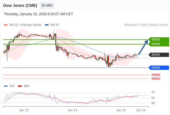 Our preference: long positions above 49060 with targets at 49580 & 49680 in extension.