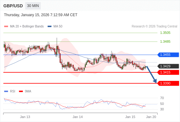 Comment: a break below 1.3415 would trigger a drop towards 1.3390.