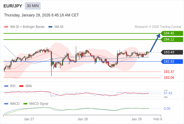 EUR/JPY intraday : the upside prevails as long as 182.93 is support