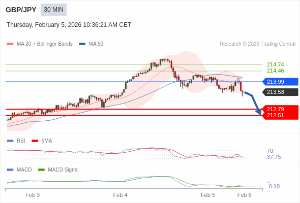 GBP/JPY intraday : the downside prevails as long as 213.99 is resistance