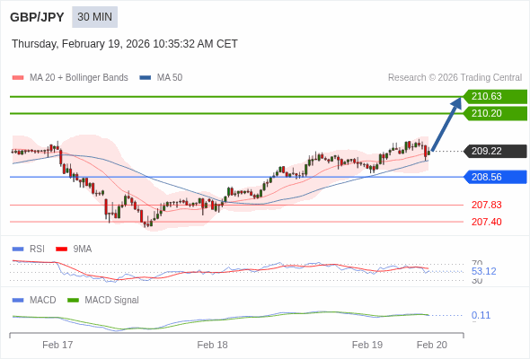 GBP/JPY intraday : as long as 208.56 is support look for 210.63
