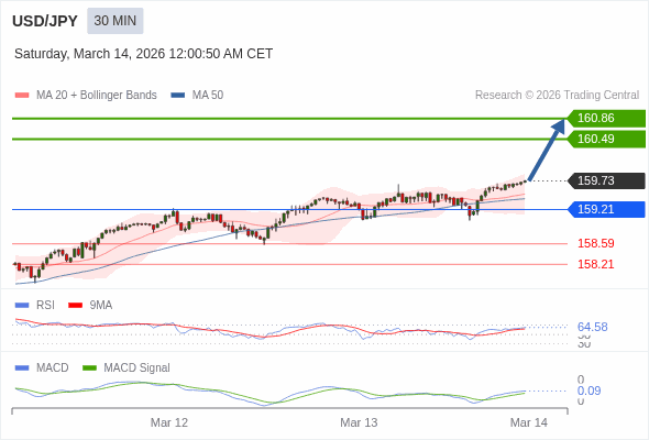 USD/JPY intraday : the upside prevails as long as 159.21 is support