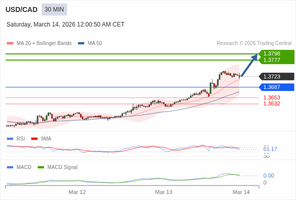 USD/CAD intraday : as long as 1.3687 is support look for 1.3798